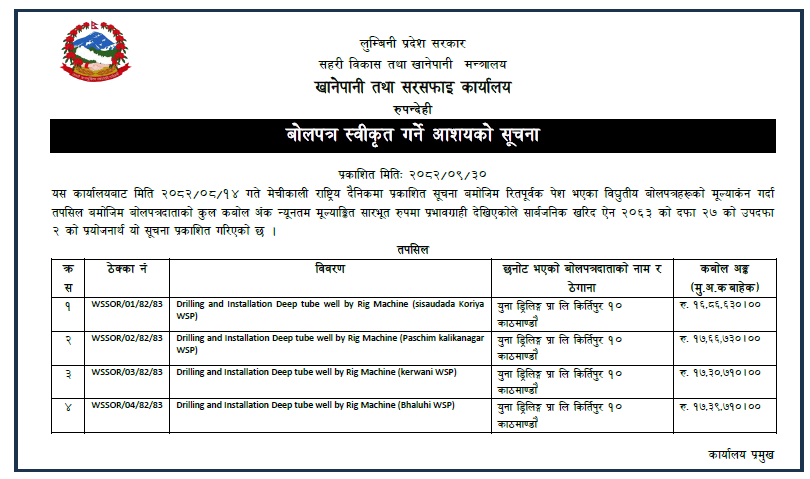 बोलपत्र स्विकृत गर्ने आशयको सूचना प्रकाशित मिति 2081।…